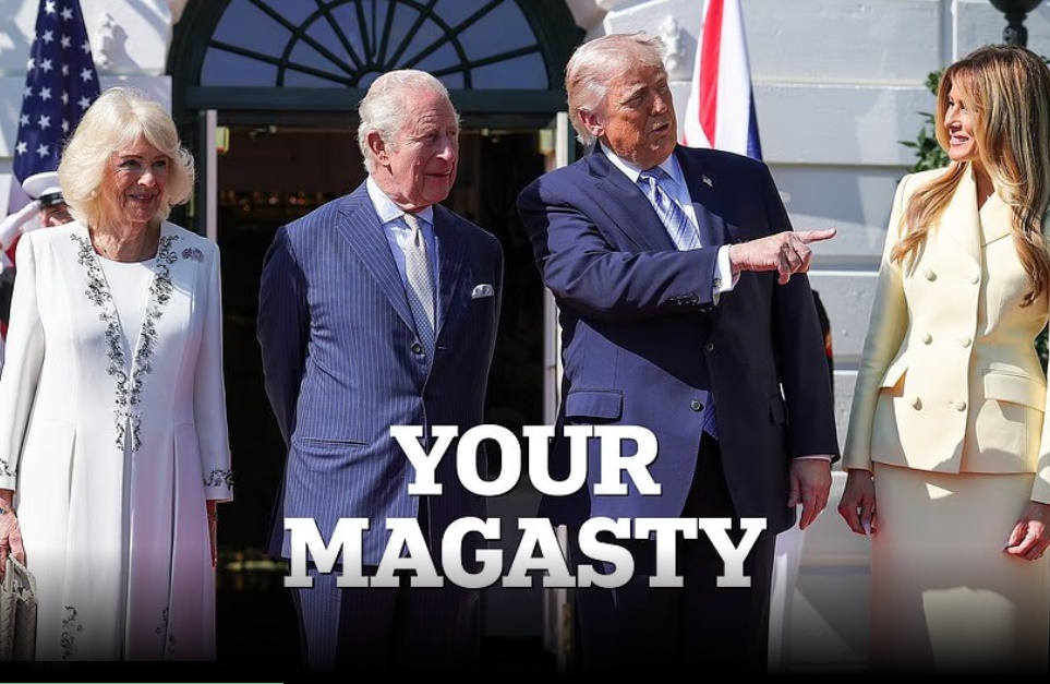 The President and First Lady Melania Trump greeted King Charles and Queen Camilla on the White House’s South Lawn, where their initial pleasantries weren’t audible to the television cameras capturing the greeting.