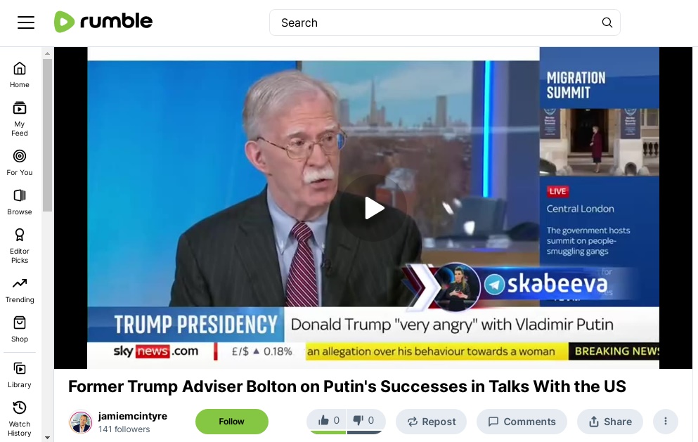Former Trump Adviser Bolton on Putin’s Successes in Talks With the US