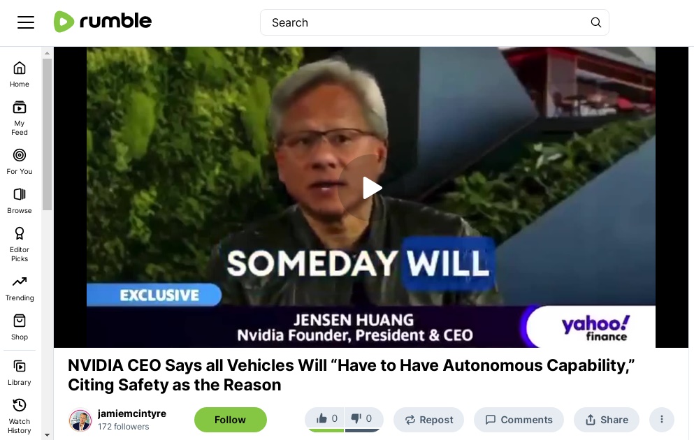 NVIDIA CEO Says All Vehicles Will “Have to Have Autonomous Capability,” Citing Safety as the Reason